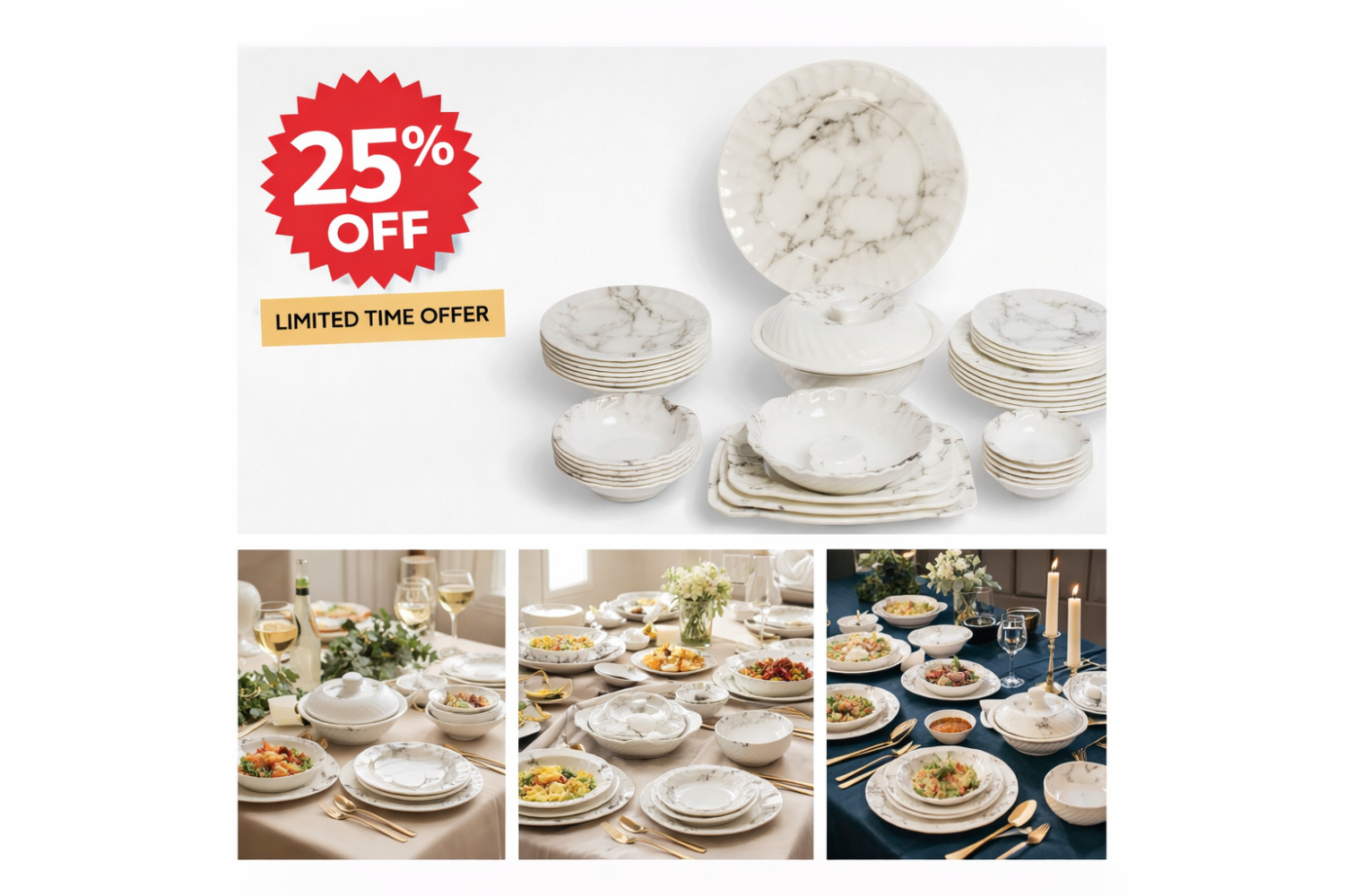 طقم سفرة متكامل بتصميم دائري أنيق، مناسب للاستخدام اليومي والضيافة، بجودة عملية وسهلة التنظيف.